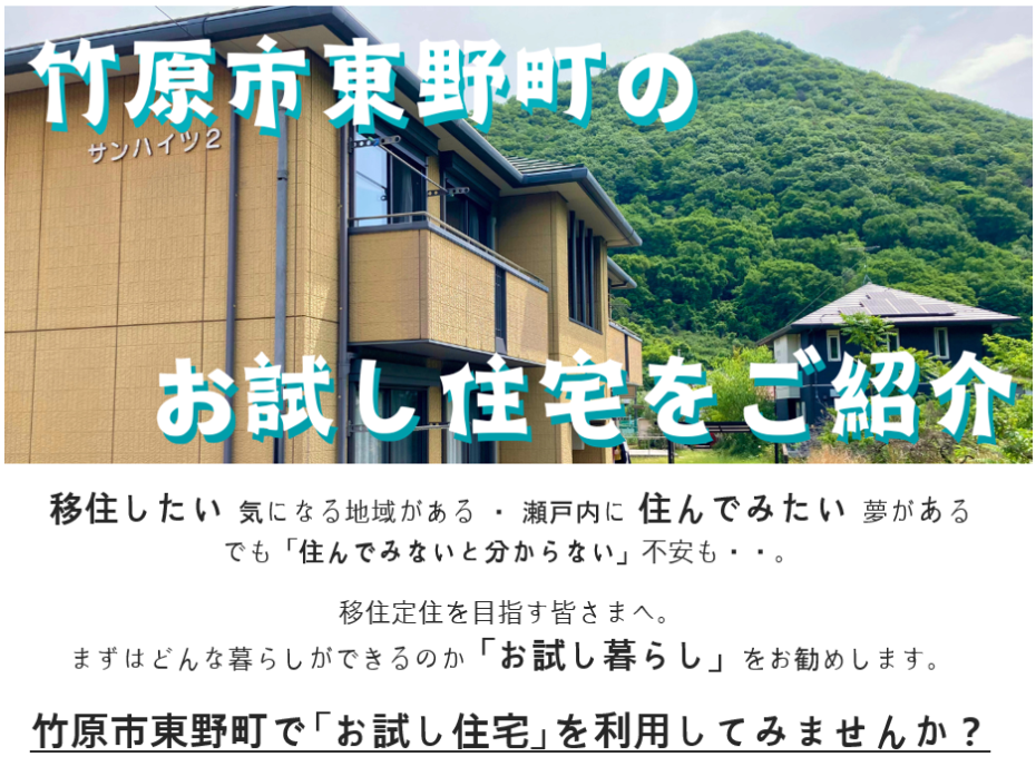 利用可能な期間で住まいを借りて生活体験ができます、地域の雰囲気や生活範囲・週末の過ごし方等を体験しよう!